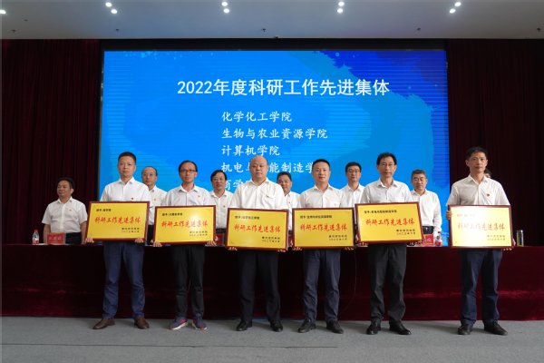 校党委副书记陈朝阳宣读了2022年度科研工作先进集体和先进个人表彰决定。化学化工学院、生物与农业资源学院、计算机学院、机电与智能制造学院、商学院、美术学院6个单位被授予2022年度科研工作先进集体荣誉称号,陈弘正等15名同志被授予2022年度科研工作先进个人荣誉称号。